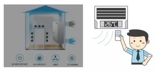 兩者配合能提升生活舒適度。中央空調利用制冷制熱,使人體處在舒適的溫度下。新風系統則可以保持室內空氣的新鮮度。通俗點說,如果夏天24小時緊閉門窗,同時開啟中央空調和新風系統,室內溫度會一直保持在25度左右,室內CO2濃度會控制在國標1000PPM以下,空氣新鮮、干凈、清爽,從此解決了關閉門窗開空調時,悶和異味的問題。