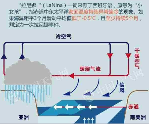 原來,目前赤道中東太平洋已進入拉尼娜狀態,并可能發展成一次拉尼娜事件,和厄爾尼諾一樣,這個小女孩會攪亂全球氣候,但影響卻與厄爾尼諾相反,容易造成我國冬季氣候偏冷,容易出現冷冬。